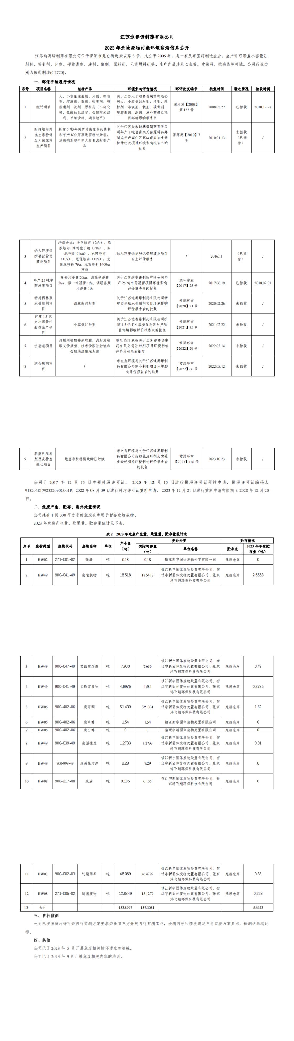 9U平台 2023 年危险废物污染环境防治信息公开